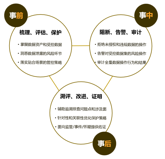 给予从敏感数据发现、识别、保护、监督到治理的一体化数据安全能力,场景式编排数据保护策略,实现数据安全能力组件的协同。