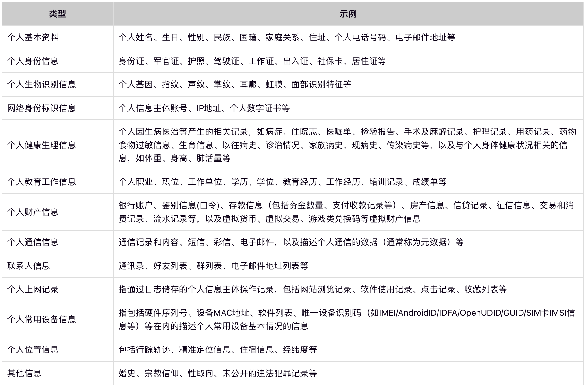 非法给予:某些个人信息仅因在个人信息主体授权同意范围外扩散,即可对个人信息主体权益带来重大风险,应判定为个人敏感信息。例如,性取向、存款信息、传染病史等。