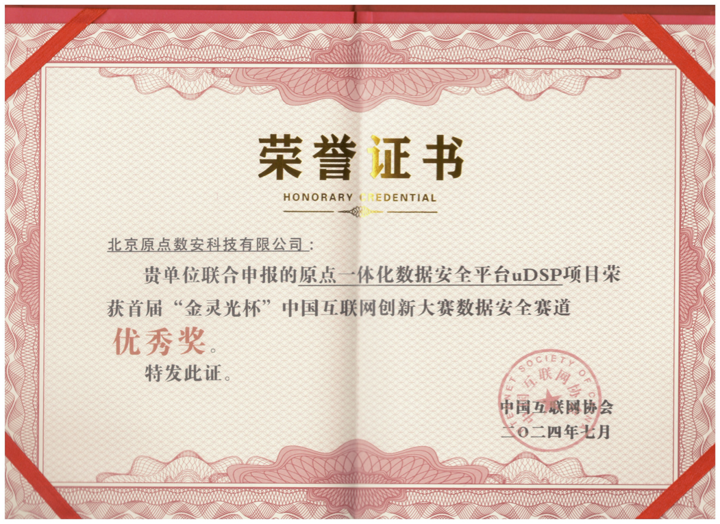 7月9日-7月11日,由中国互联网协会主办的 2024(第二十三届)中国互联网大会暨首届“金灵光杯”中国互联网创新大赛在北京召开,大会以“互联三十载 智汇新质变”为主题,聚焦“人工智能”、“数据要素”、“数据安全”等九大赛道。k8凯发申报的「一体化数据安全平台 uDSP 」项目从全国 506 家单位的参赛项目中脱颖而出,荣获“金灵光杯”数据安全赛道优秀奖。