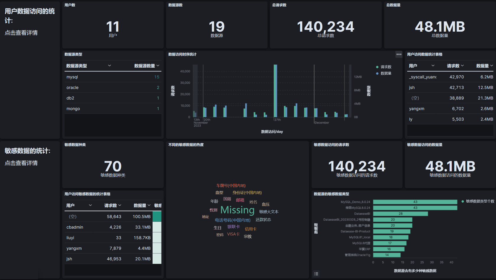 屏蔽分散、异构数据源的差异和复杂性,全面覆盖敏感数据并形成统一的敏感数据目录可视化视图;可自定义的实时敏感数据分布地图,完整掌握敏感数据资产动态,满足监管上报等多样化的管理诉求。