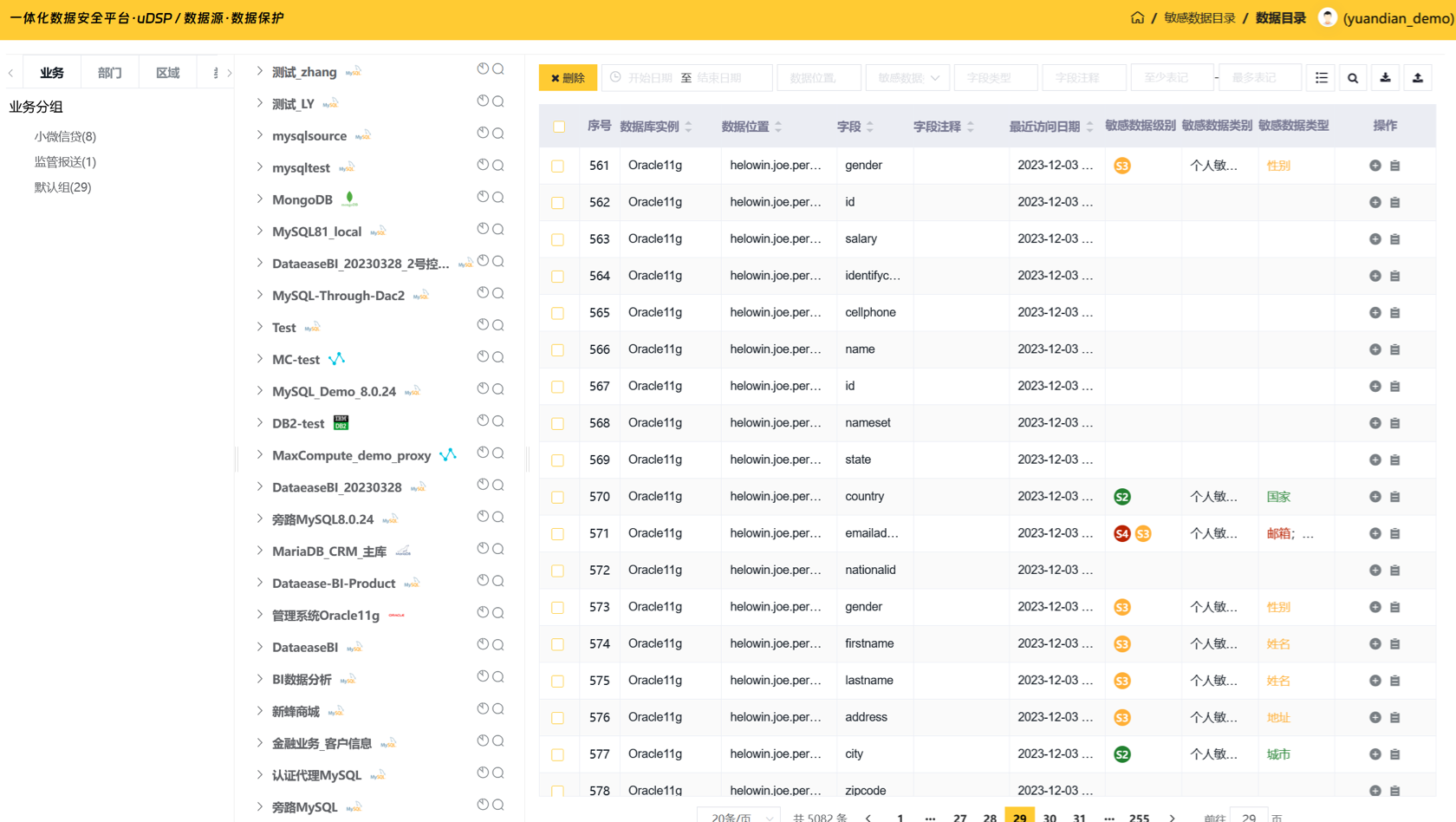 “双模引擎”自动化识别“被动发现+主动扫描”双模式敏感数据自动发现和识别引擎,保证敏感数据目录的完整性及新鲜度,及时发现新增、变化的敏感数据类型,自动标记并更新敏感数据目录。